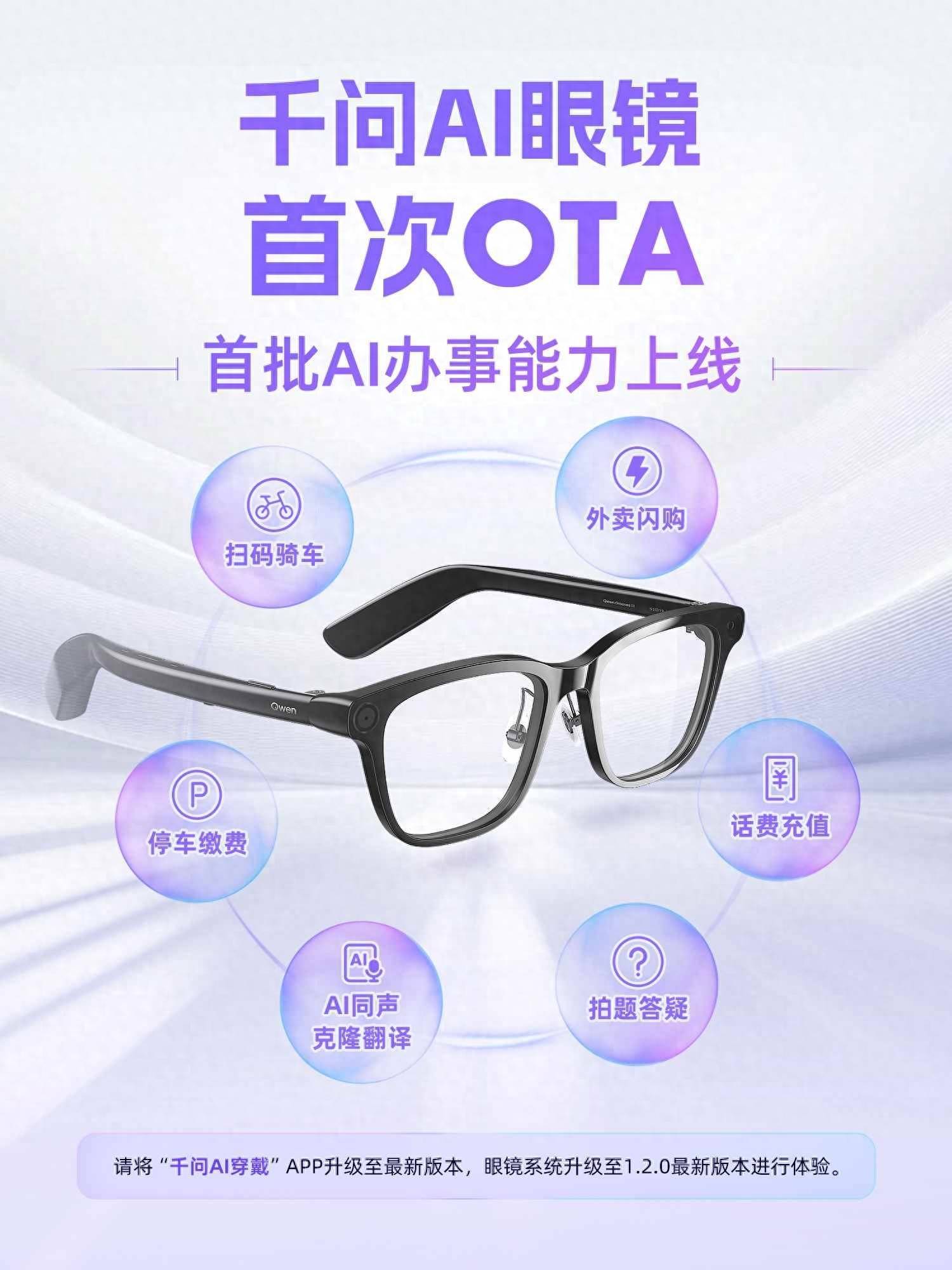 智通财经APP获悉,4月2日,阿里(09988)千问App宣布,千问AI眼镜迎来首次OTA升级,接入淘宝闪购、支付宝,话费充值、扫码骑车、停车缴费、点外卖等首批“AI办事”能力上线。此次OTA升级覆盖千问AI眼镜G1、夸克AI眼镜G1,即日起陆续推送。